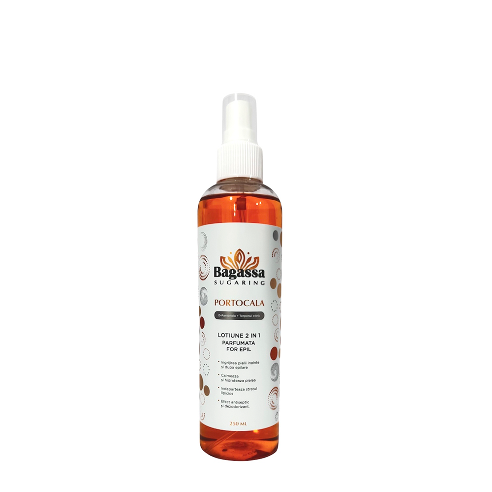 Conceputa pentru curatarea rapida si eficienta a pielii inainte si indepartarea reziduurilor de pasta de zahar de pe piele dupa procedura de shugaring. Terpenul citric (de portocala) este un solvent natural delicat, cu efect antiseptic si dezodorizant. Tonifica pielea, o satureaza cu vitamine si microelemente. Pantenolul (vitamina B5) hidrateaza si are efectul calmant asupra pielii, indepartand rapid roseata. Potrivit pentru orice tip de piele.