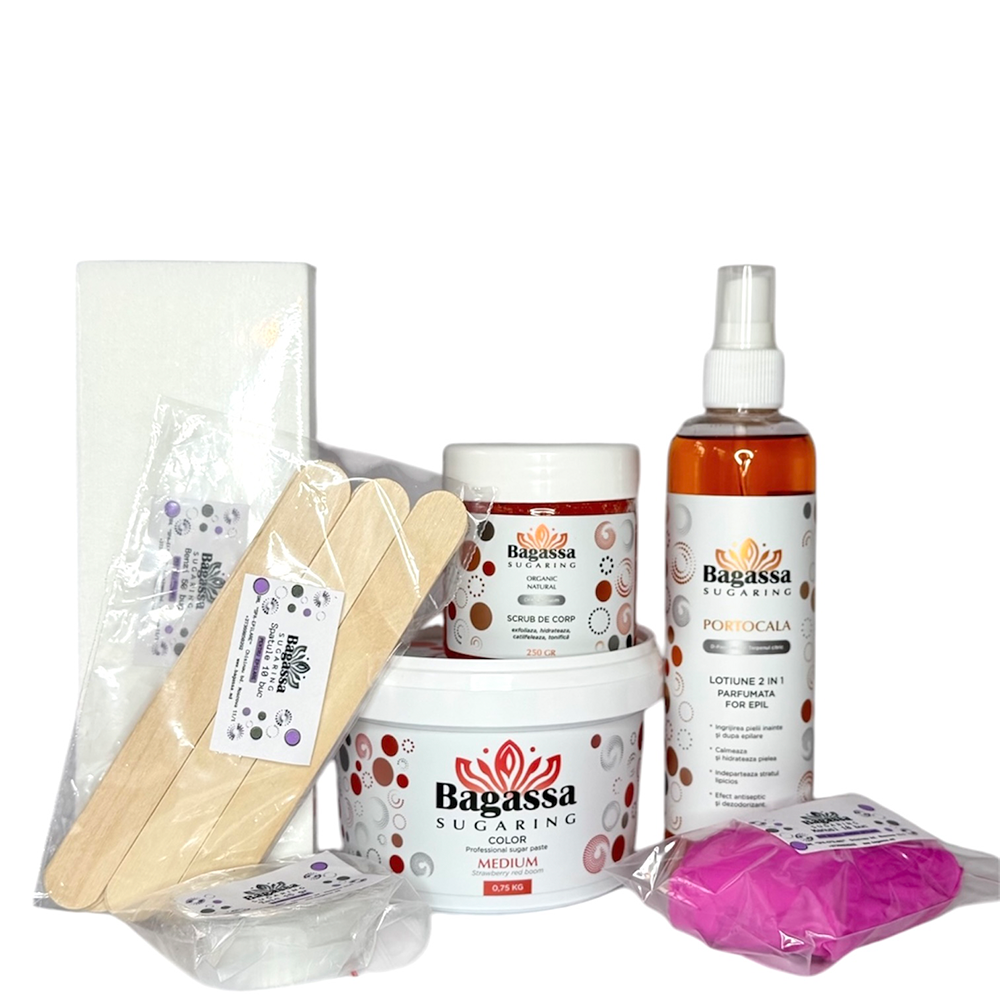 1.Bagassa Color Medium - Strawberry Sugaring - pastă profesională de densitate medie. Structura transparentă a pastei de culoare roșie împreună cu aroma de căpșuni suculente vor adăuga o notă de pasiune și farmec vieții de zi cu zi. Ideală pentru tehnici de epilare manuală și în încăperi cu condiții de temperatură moderată.